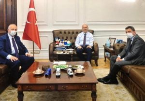 Araklı Belediye Başkanı Recep Çebi ve Ak Parti Araklı İlçe Başkanı Şaban Bıyık ile birlikte İçişleri Bakanı Süleyman Soylu’yu makamında ziyaret ettiler.